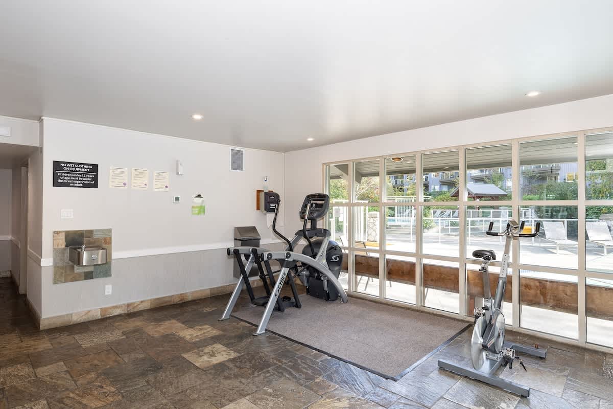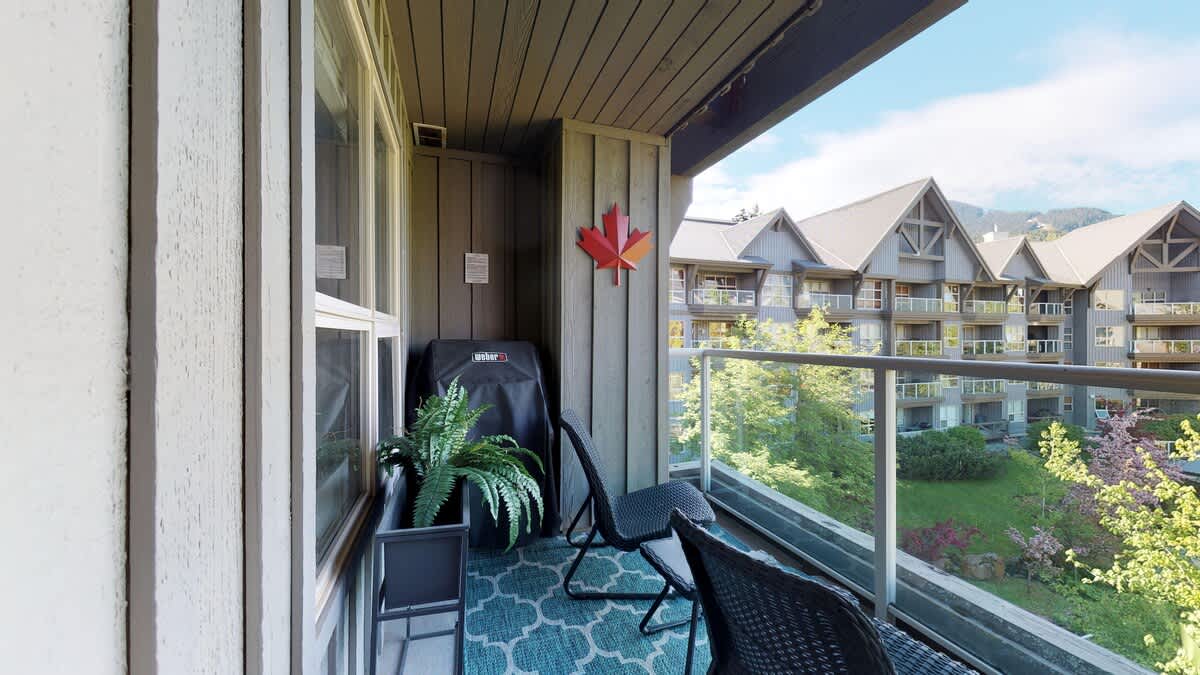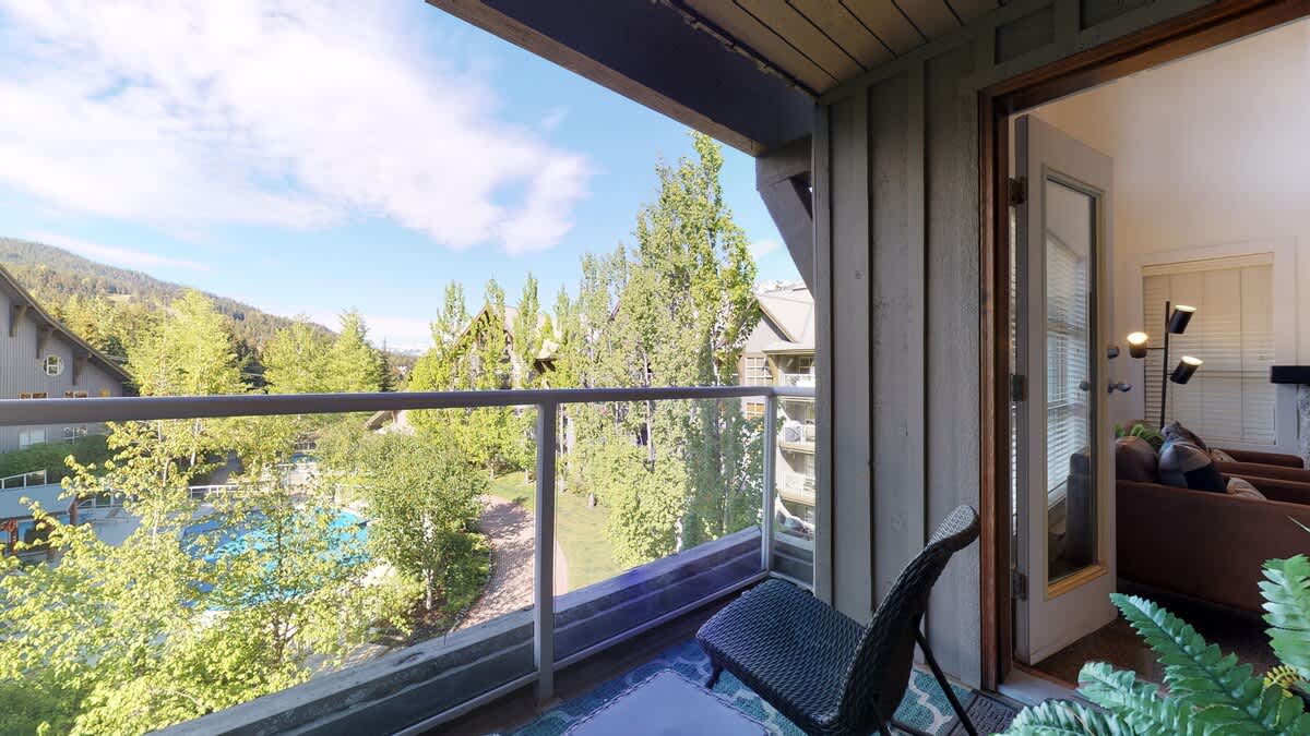 Located in the Aspens complex at the base of Blackcomb, the condo offers ski-in/ski-out access (weather permitting), with a short walk to Merlin’s Run leading to the Blackcomb Gondola and Magic Chair. After skiing or winter walks through the village, unwind in the outdoor pool or shared hot tub, or keep up your routine in the gym. Secure ski and bike storage is available on-site, along with an elevator for easy access to this single-level home.