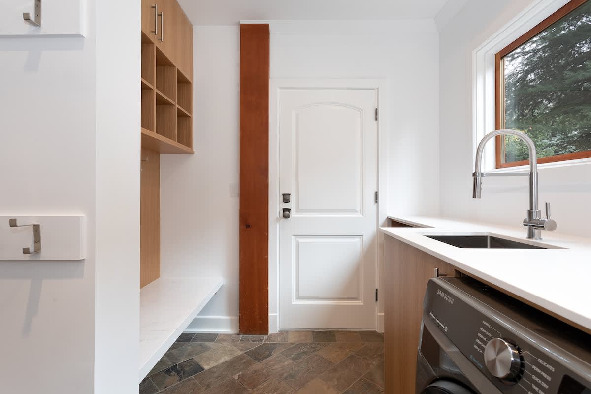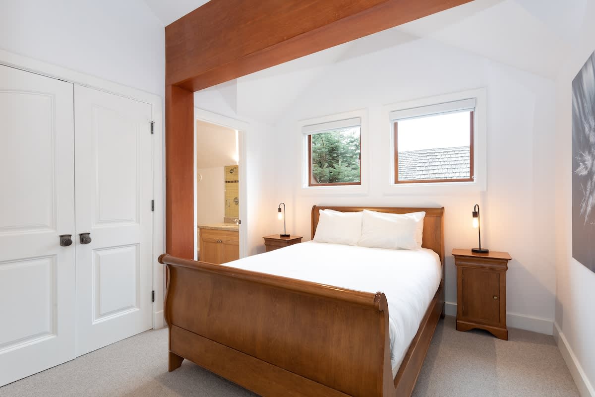 You’ll have Wifi, a dedicated workspace with desk and office chair, and in-suite laundry with a free washer and dryer. The home also includes heating, portable fans, and thoughtful safety features such as smoke and carbon monoxide alarms, a fire extinguisher, and a safe. Self check-in with a smart lock makes arrivals simple.