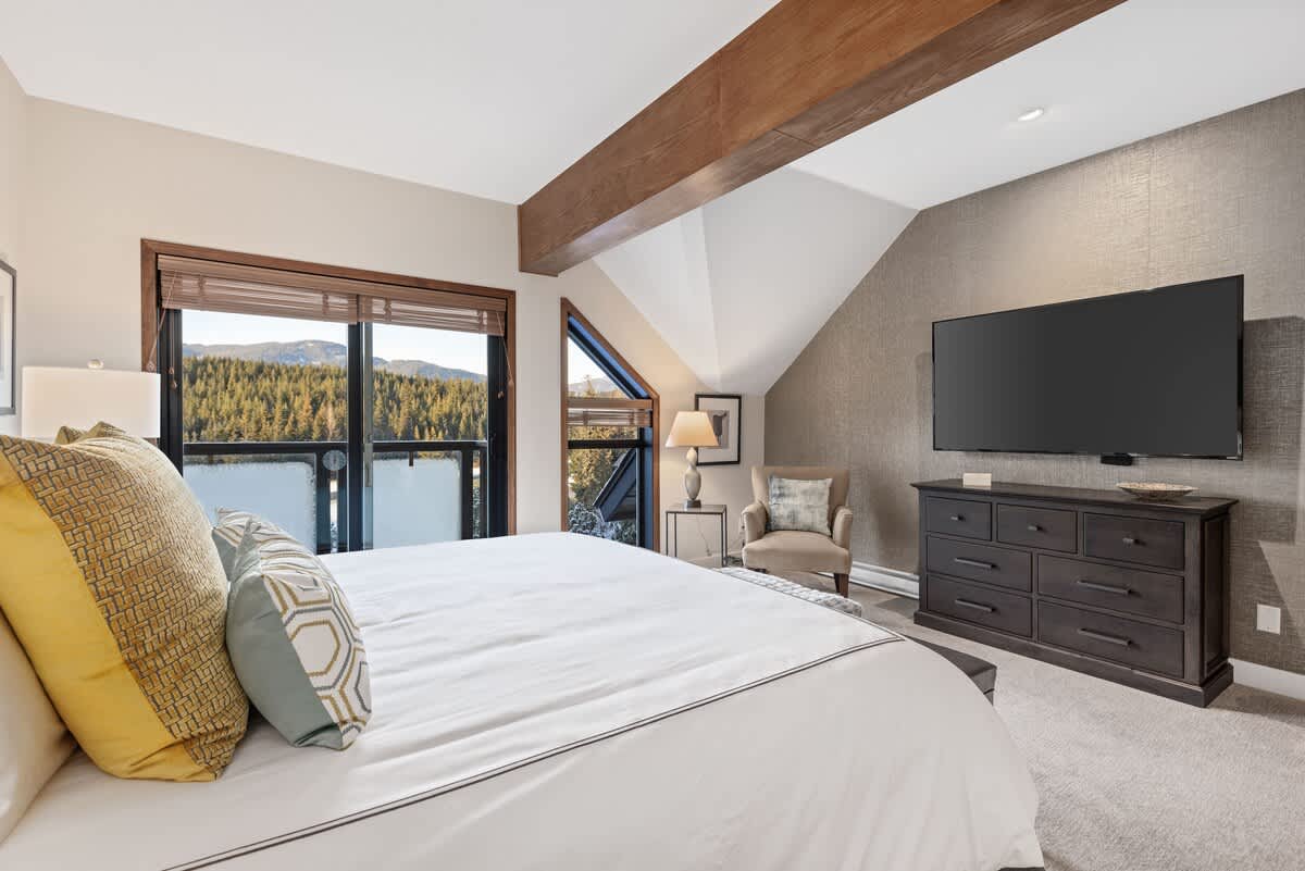 Nestled in a quiet, forested pocket near the Upper Village, the townhouse offers easy access to Whistler’s winter experiences. A free shuttle connects you to the gondola and village, while nearby trails invite peaceful walks through alpine scenery. Lake access via a path or dock adds another way to experience the landscape.