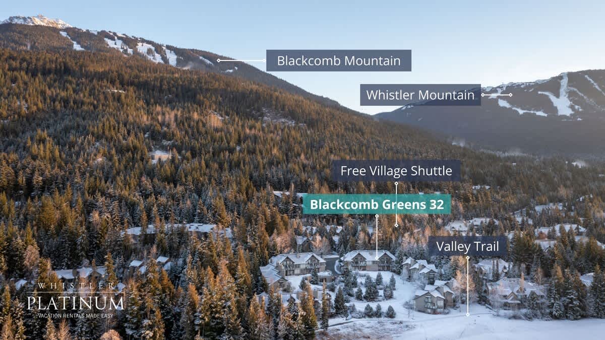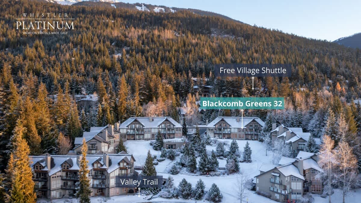 Blackcomb Greens is nestled beside the Fairmont Chateau Whistler Golf Club, offering peaceful, forested surroundings with sweeping mountain views. The Upper Village and Blackcomb Gondola are just a short walk or a quick ride on the free village shuttle, while the nearby Valley Trail invites year-round walking and biking adventures.
