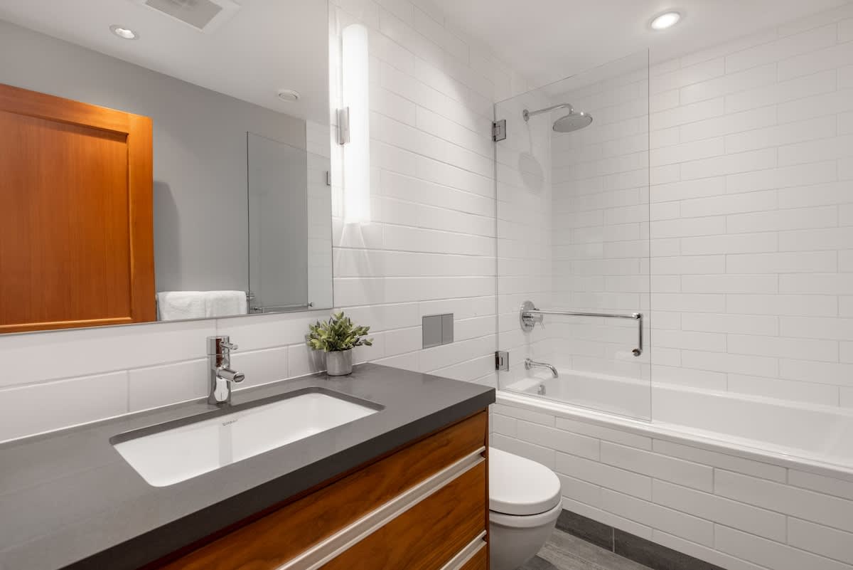 • Second bathroom that features a large glass-enclosed rain shower