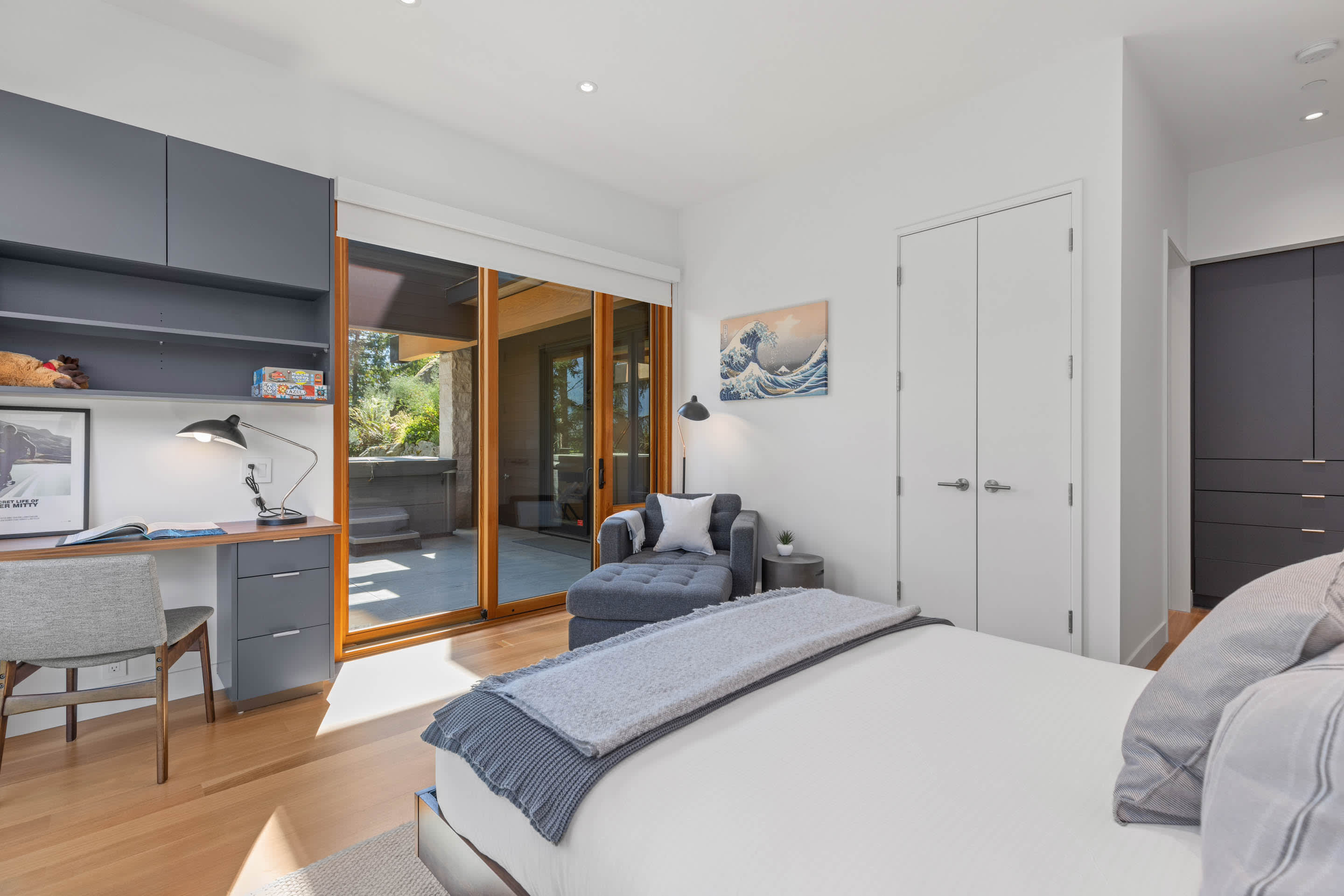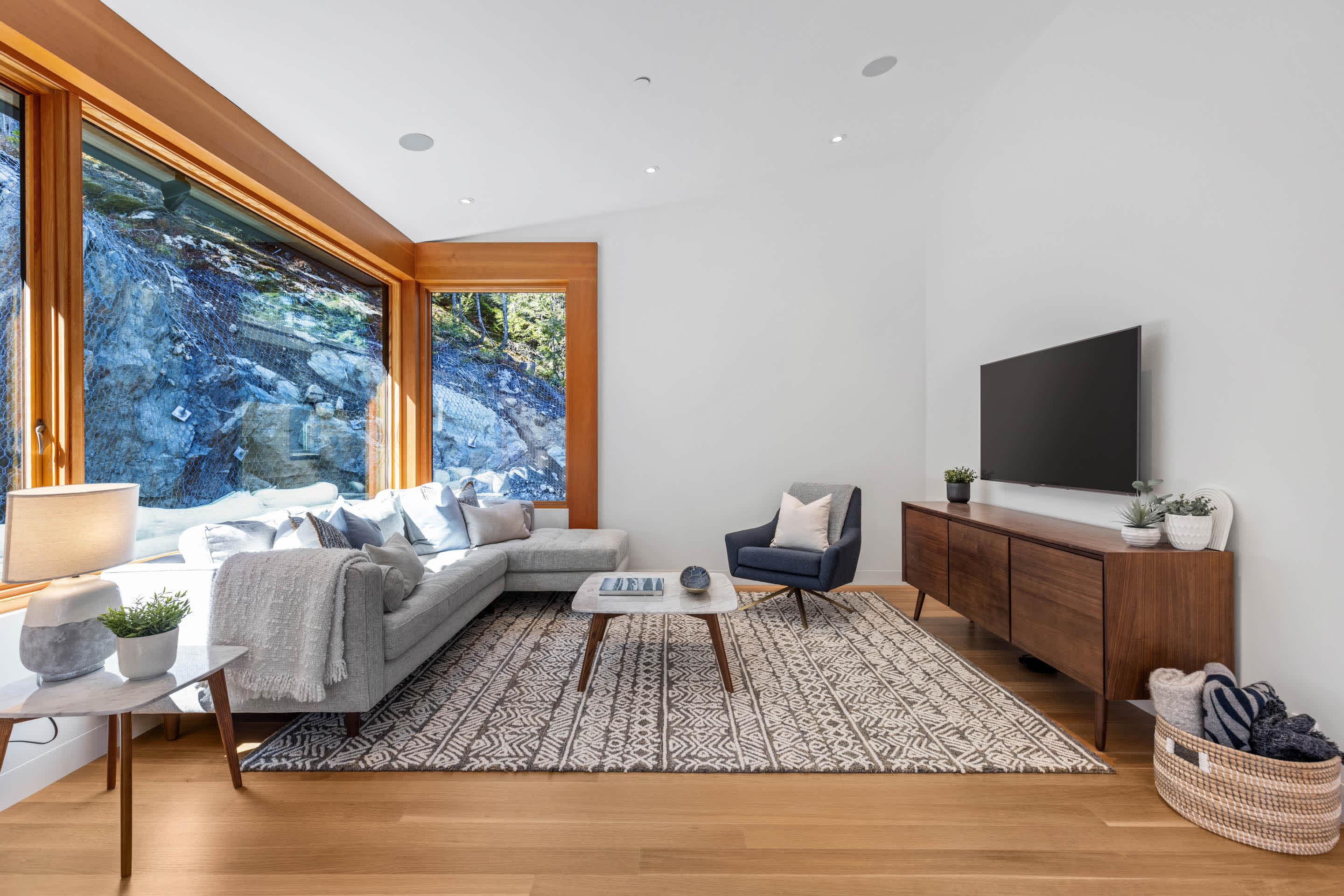 Located in Whistler’s Blueberry Hill neighborhood near Alta Lake, the home offers a peaceful alpine setting with mountain views. Whistler Village, Creekside, ski lifts, dining, and shopping are a short drive away.