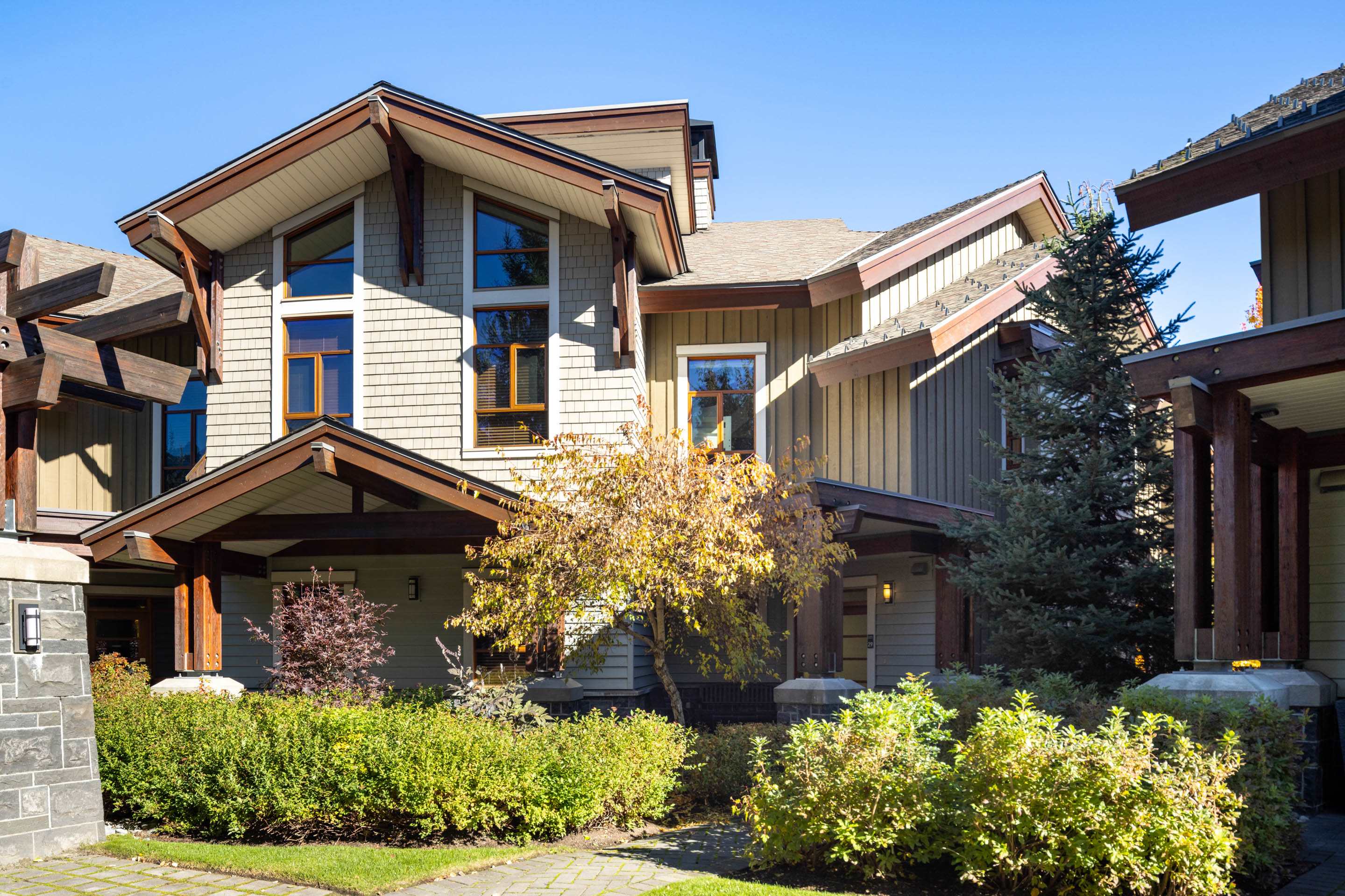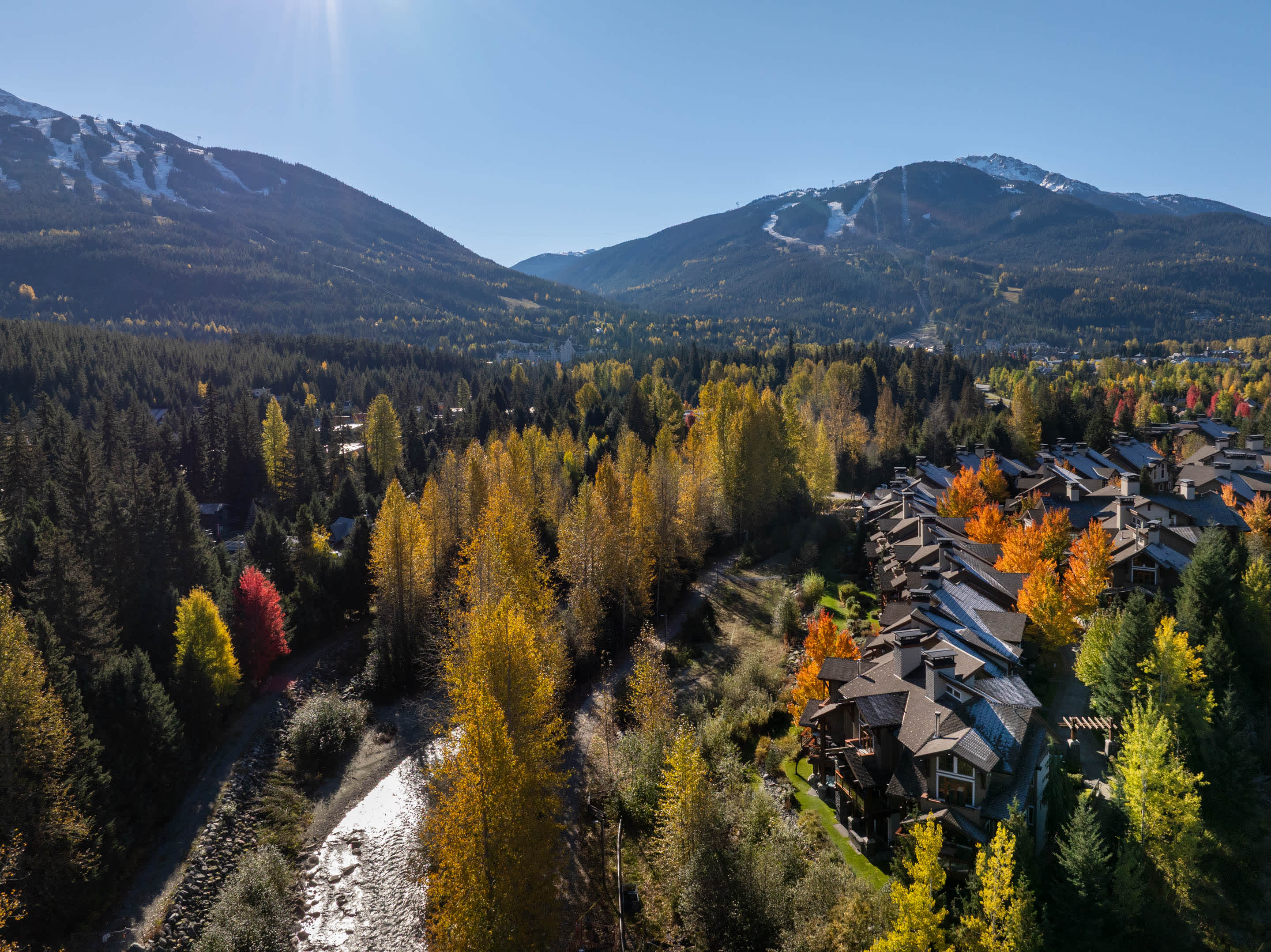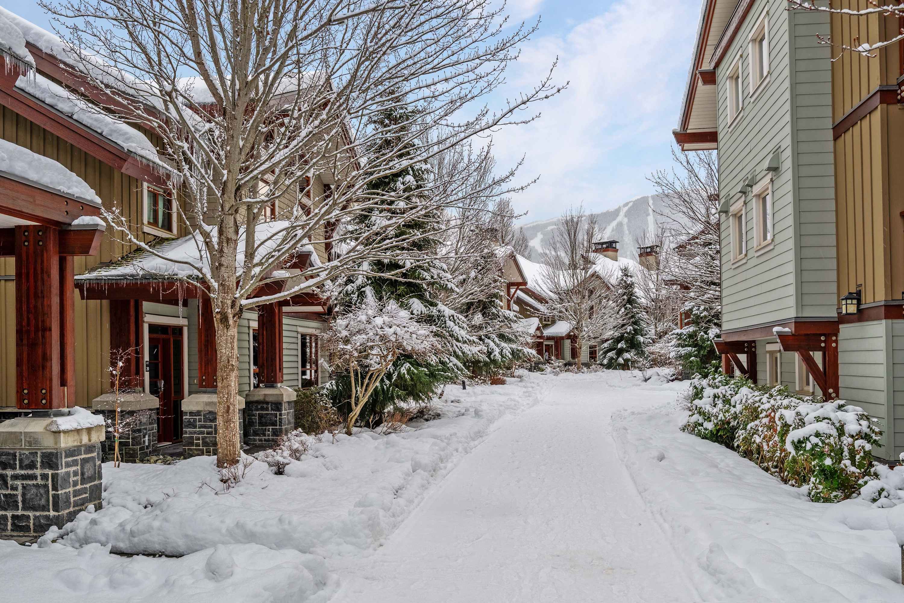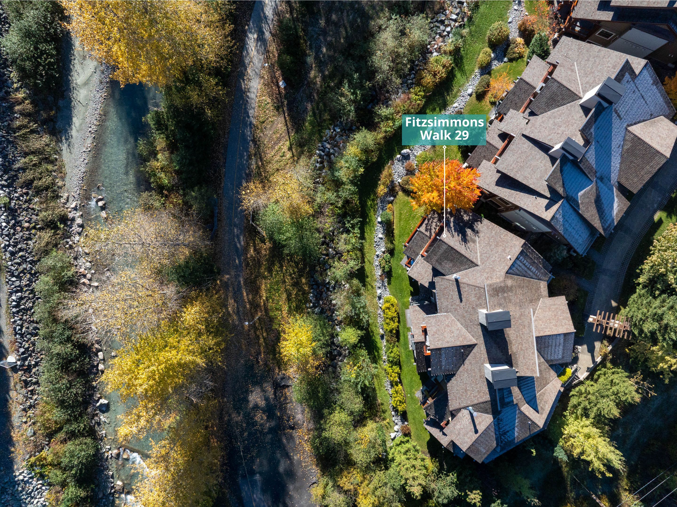Fitzsimmons Walk is located just north of Whistler Village, along the Valley Trail and beside Fitzsimmons Creek. This quiet, upscale enclave offers a rare mix of privacy, mountain views, and walkable access to shops, restaurants, and the gondolas. Nesters Market is just across the road for groceries and essentials, and the village is a 10–minute walk via a scenic trail. The area is ideal for guests seeking a peaceful setting close to Whistler’s core amenities.