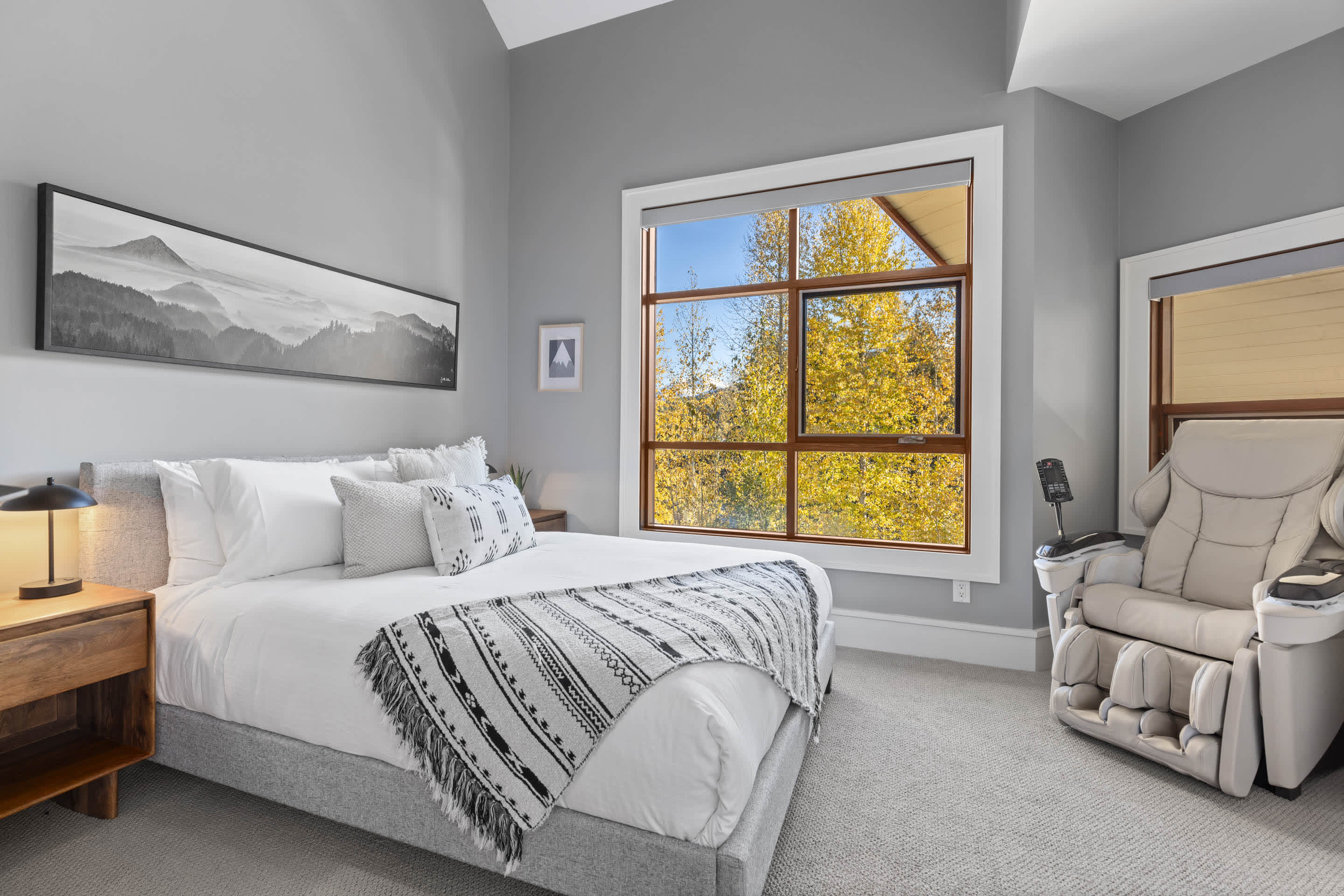 The townhouse includes Wi-Fi, a dedicated workspace, in-suite laundry, bathroom essentials, and a private garage with a mudroom for ski or hiking gear. Self check-in with a smart lock makes arrival simple.