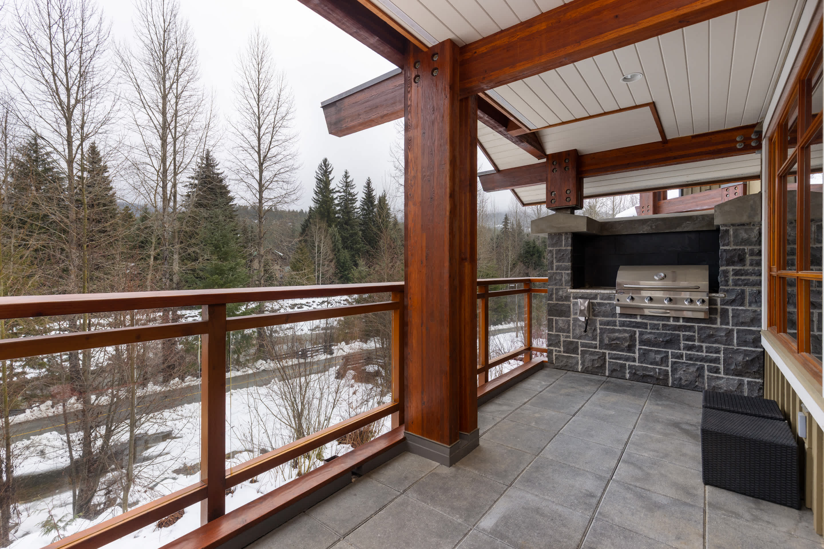On crisp winter evenings, unwind in the hot tub as steam rises into the night air, or gather around the outdoor fireplace before heading inside. The patio and balconies overlook Fitzsimmons Creek, creating a peaceful setting in every season.