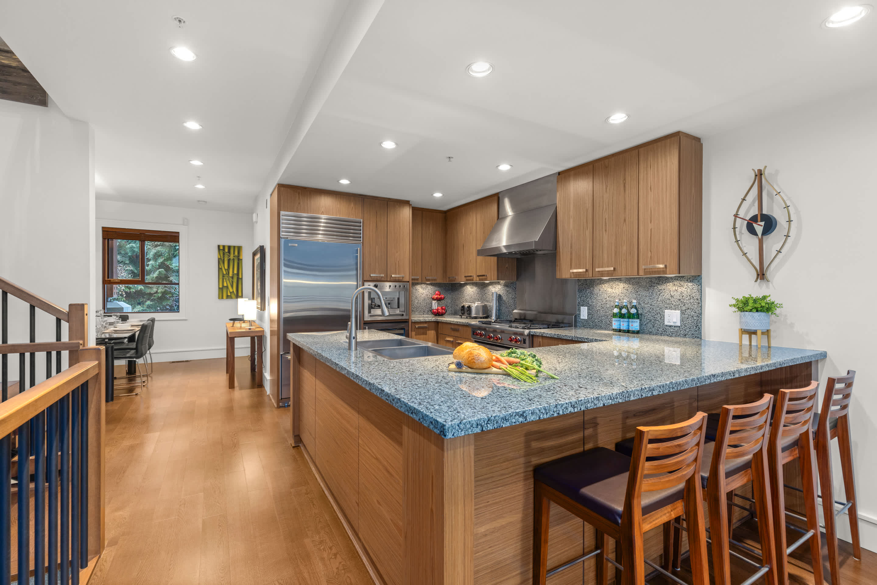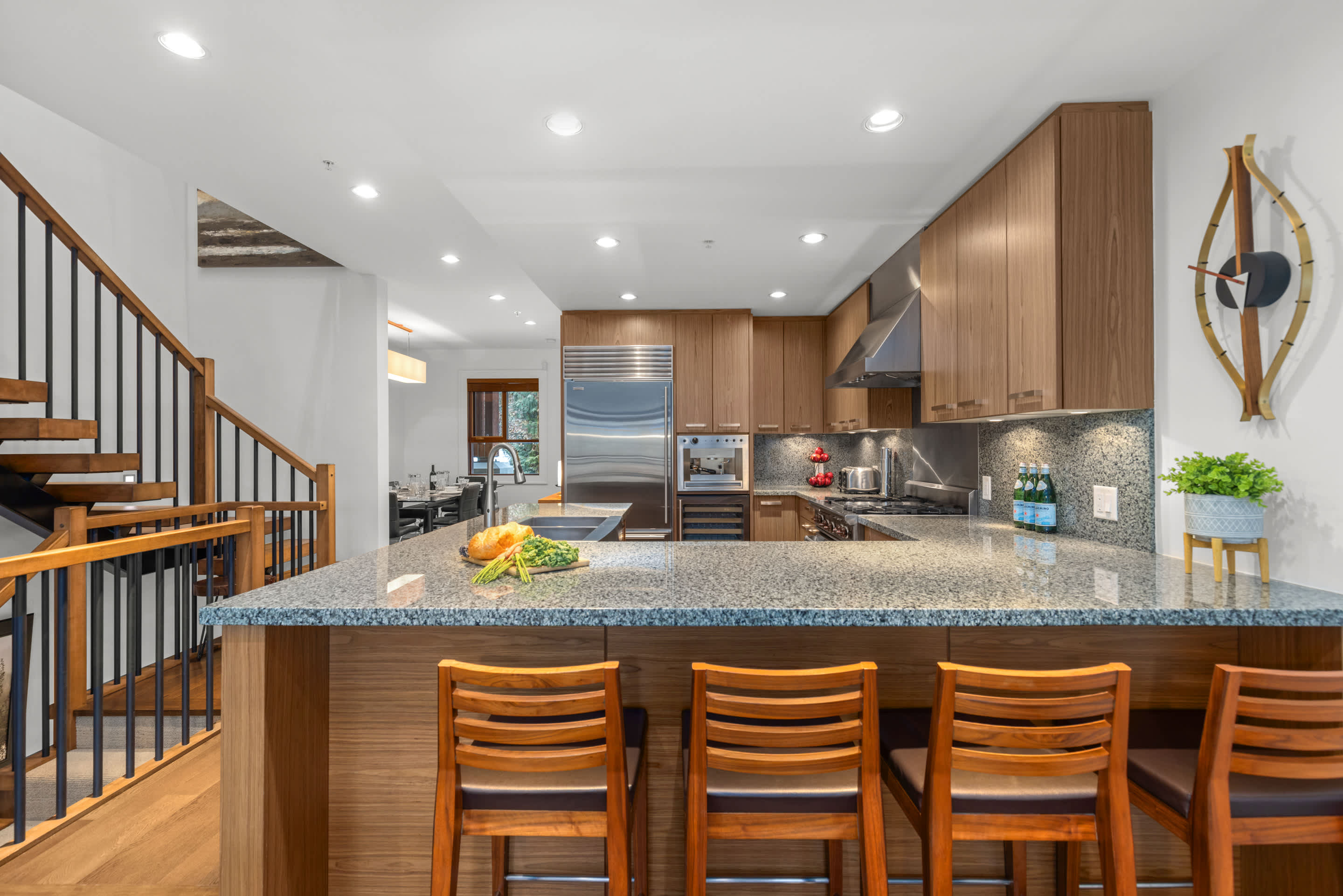 Whether you’re preparing a quick meal before hitting the slopes or cooking a leisurely dinner, the kitchen provides ample workspace with extensive countertops and a spacious island. Start your day with breakfast and coffee in this well-equipped culinary space. Slip out to the balcony and cook up dinner on the BBQ while soaking in the alpine views.