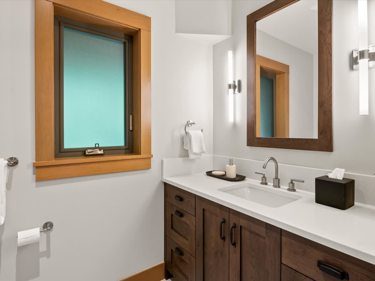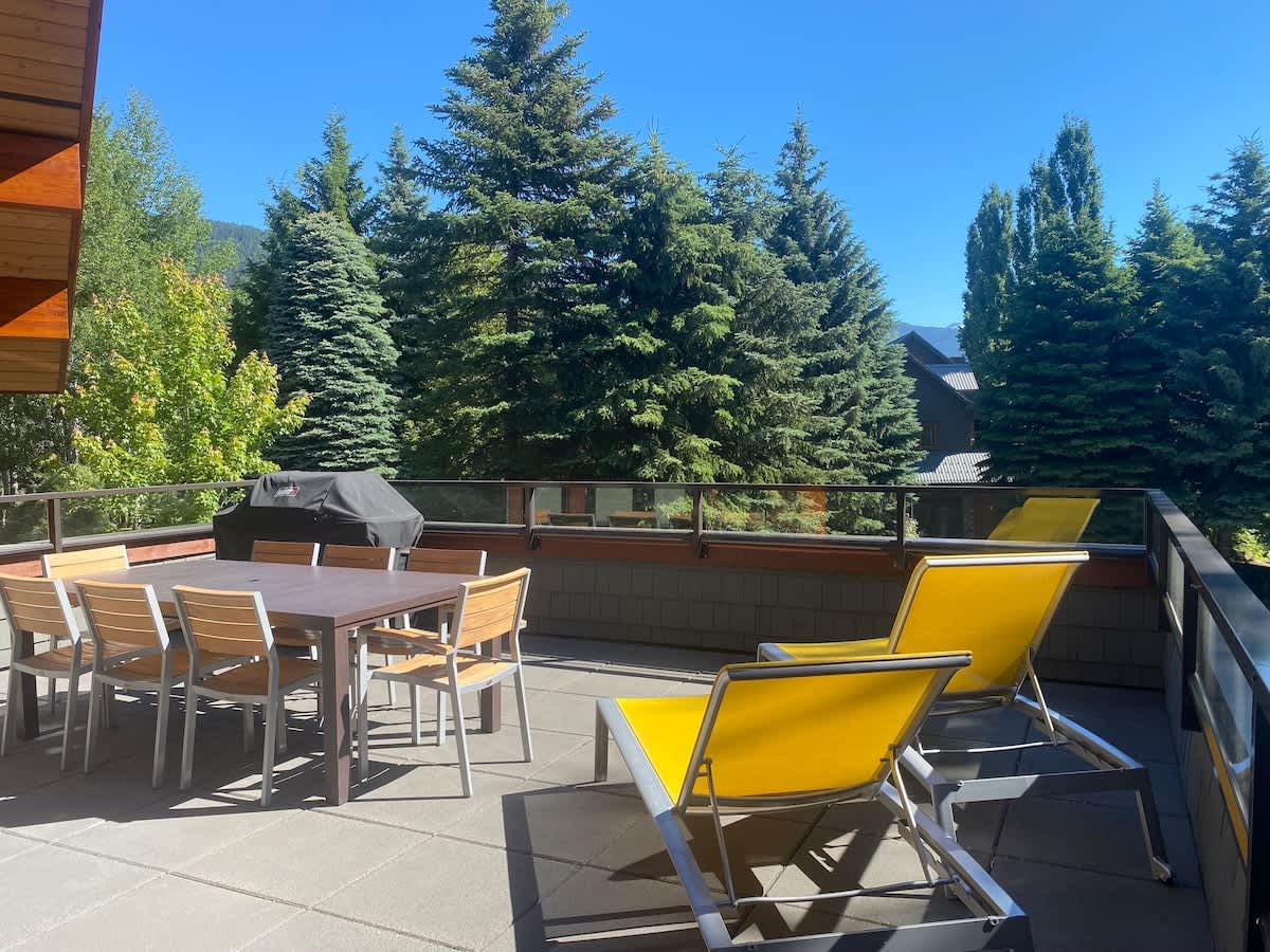 Step outside to take in mountain views from multiple patios and decks. The front patio includes outdoor furniture, dining for eight, and a BBQ grill, while the covered hot tub provides a relaxing place to unwind after a day in the snow. Lake access is nearby, offering a peaceful connection to Green Lake year-round.