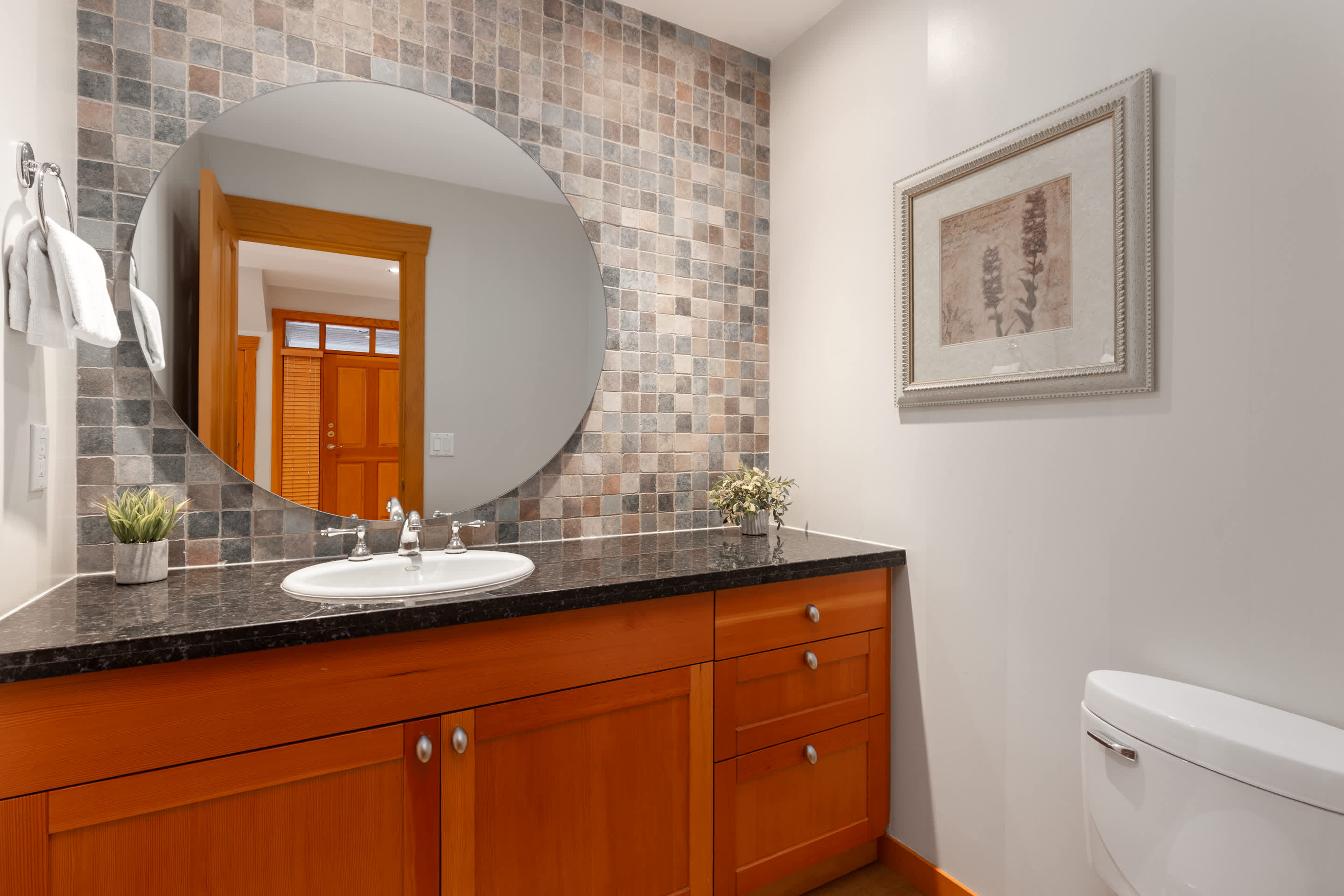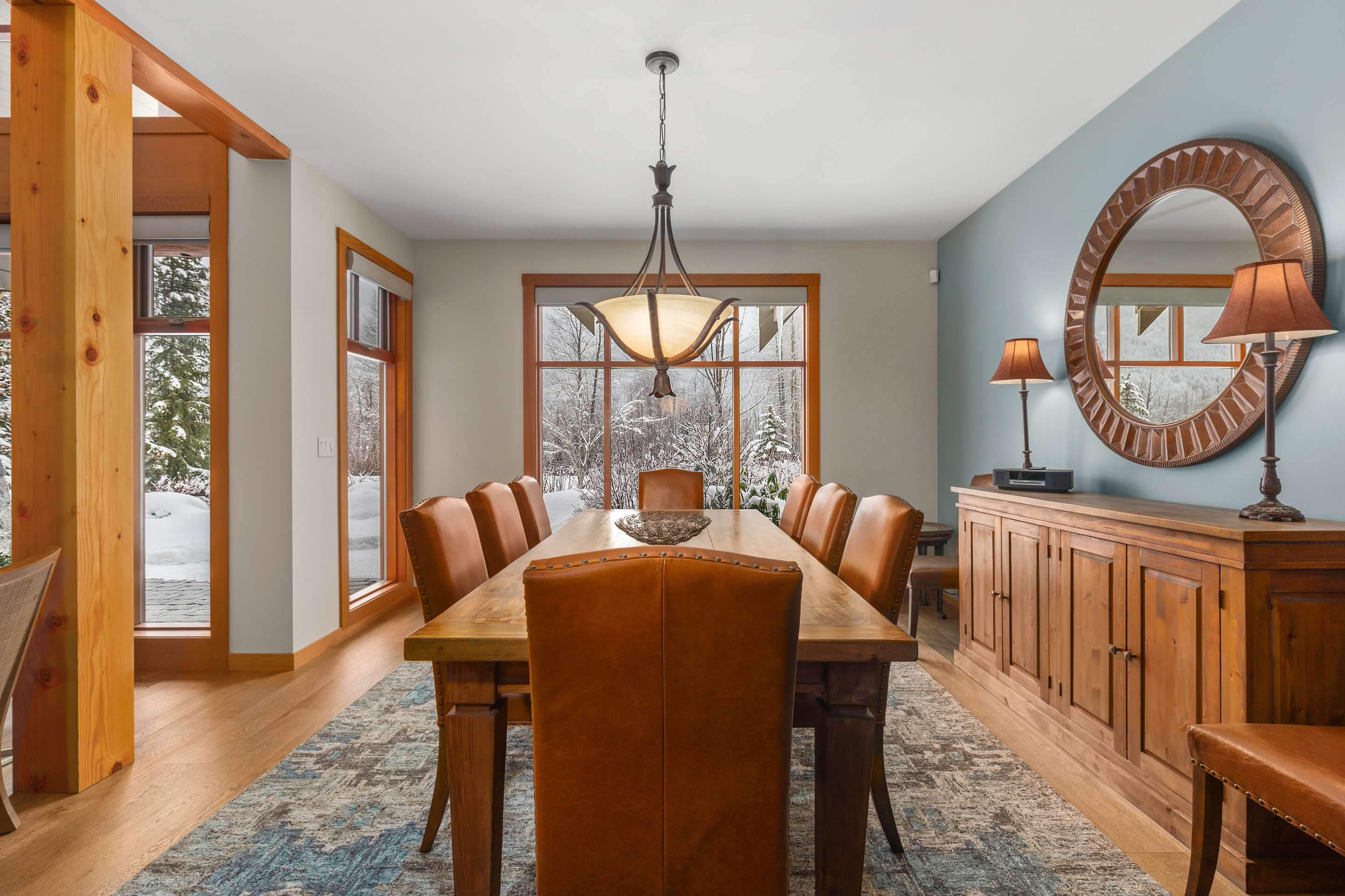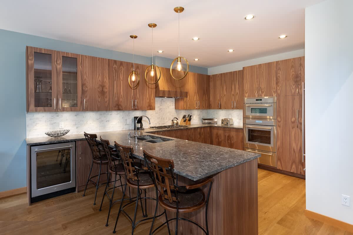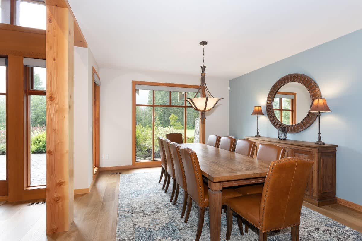 The kitchen is fully equipped with granite counters, Bosch and Sub-Zero appliances, and everything you need for shared meals. Gather around the dining table that seats ten or enjoy casual mornings at the breakfast bar. Whether you’re brewing coffee before first tracks or settling in after an evening out, the space is designed for easy time together.