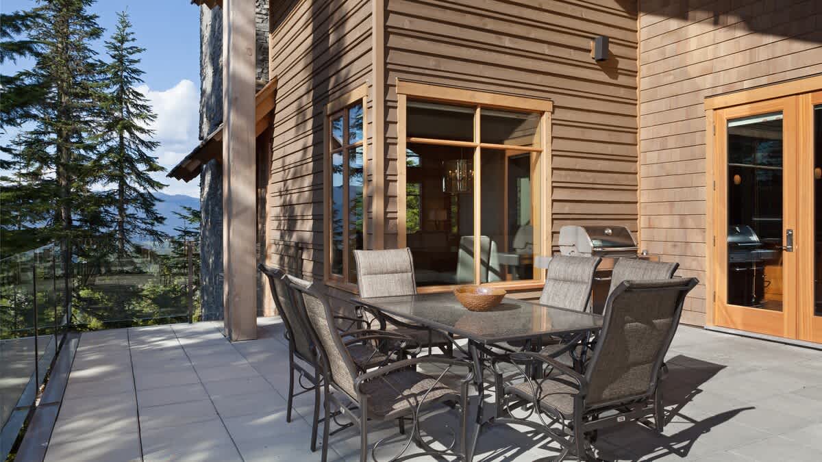 Step onto the patio or balcony to take in lake and mountain views framed by towering evergreens. The outdoor dining area and BBQ grill create a relaxed setting for fresh alpine evenings, while outdoor furniture offers space to linger in the crisp air before returning indoors to warm up by the fire.