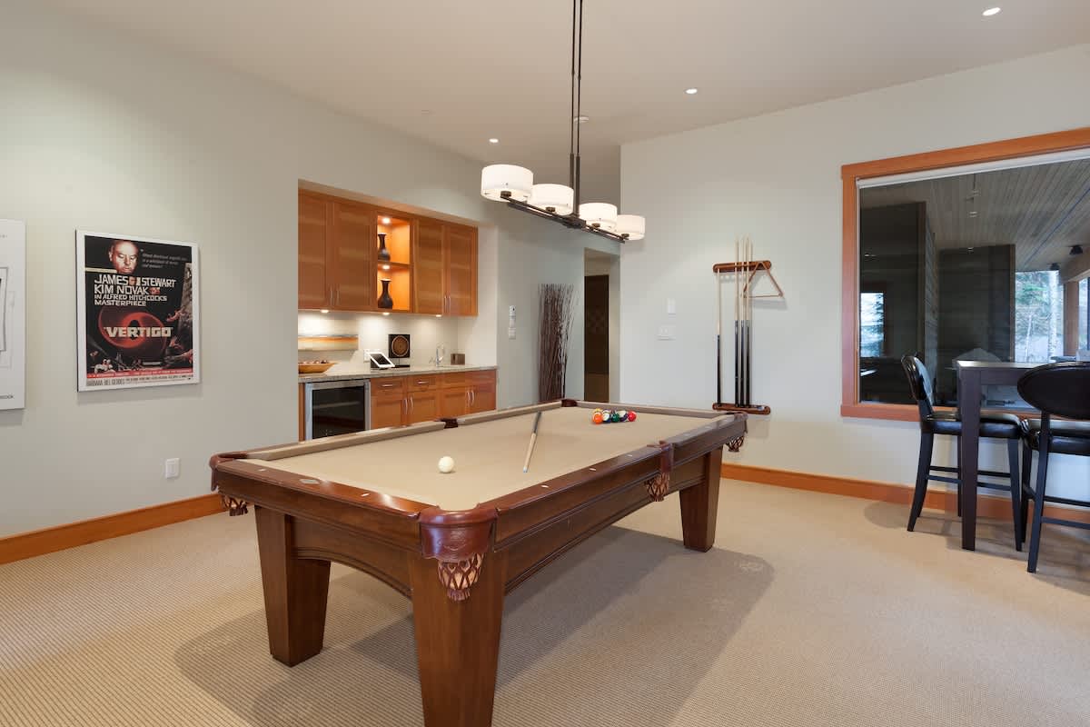 When the weather calls for cozy time indoors, the media room and pool table bring everyone together. Settle in with the TV and Wifi, or gather around the indoor fireplace as snow falls outside, creating a calm and comfortable retreat between outings.