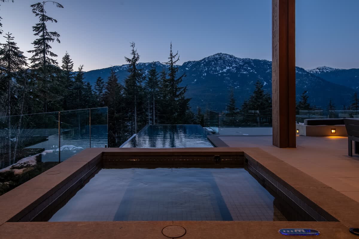 After skiing, return to the ski plaza and store gear in the boot room with dryers and warmers. Unwind with a soak in the hot tub or a swim in the heated infinity pool overlooking the peaks. A cedar sauna and steam shower are tucked into the spa area, while the home theatre and games space offer cozy nights in.