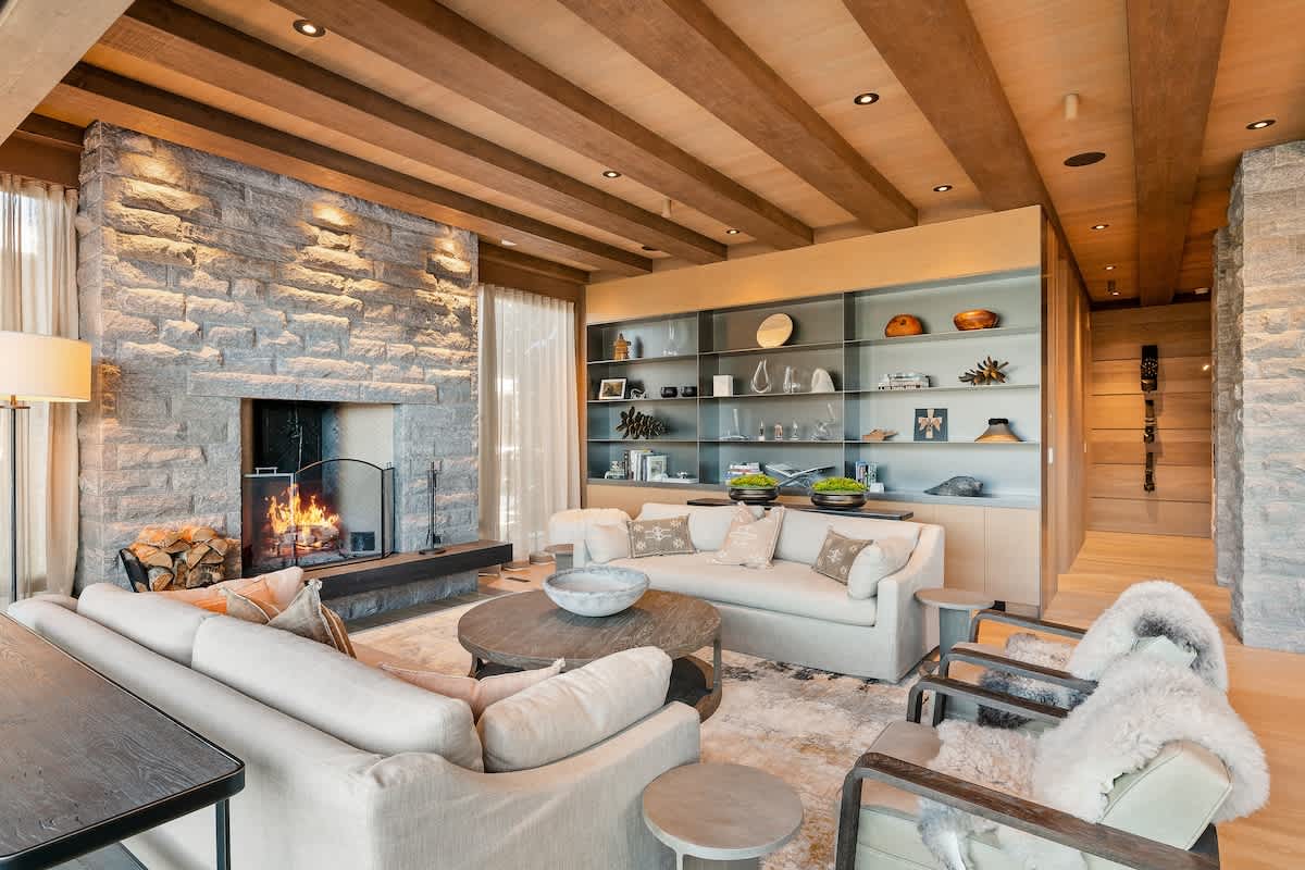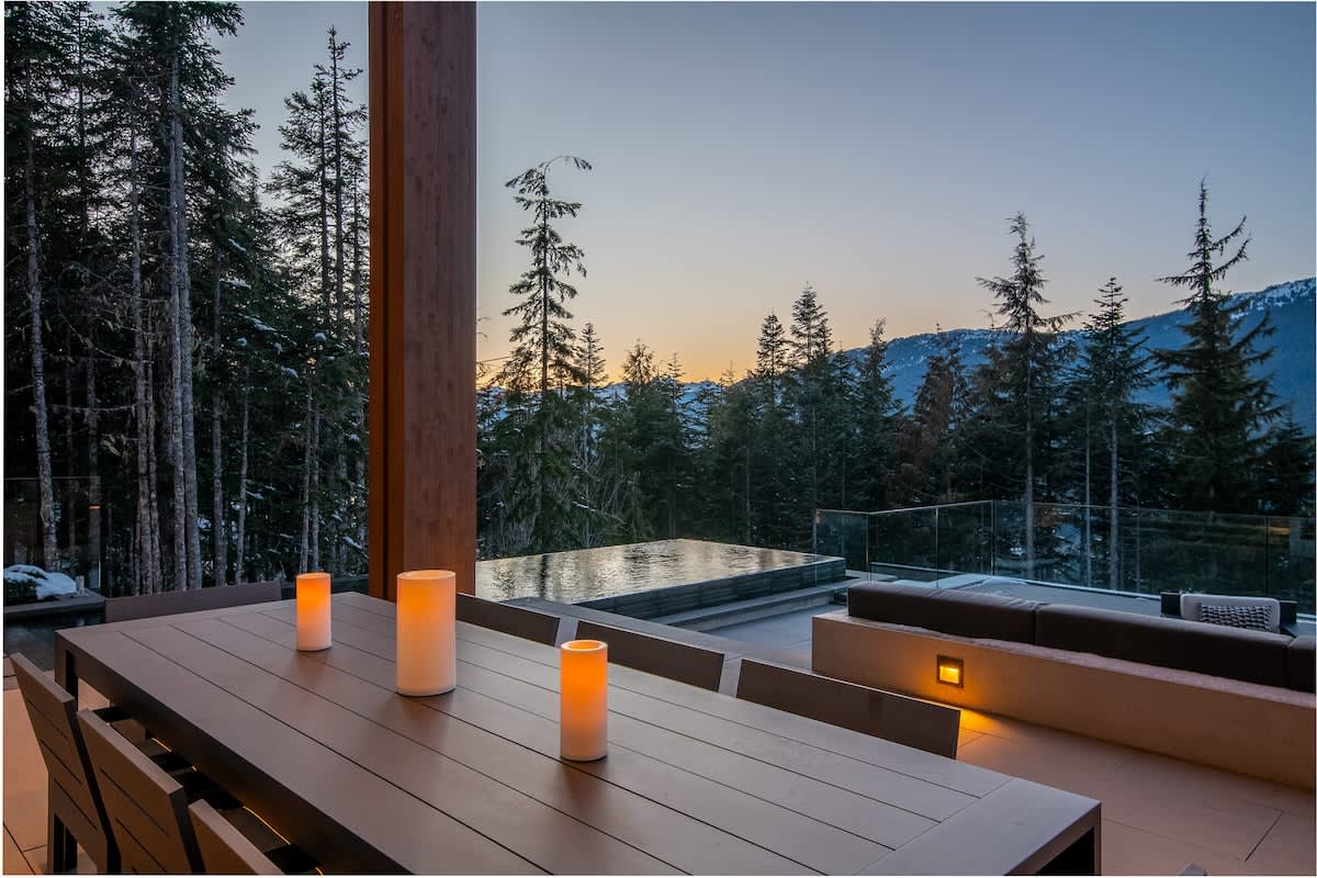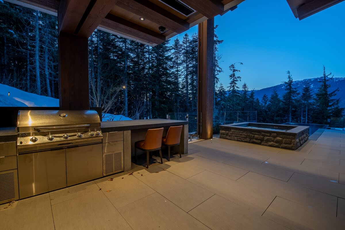 Multiple terraces bring you close to the mountain air, with outdoor furniture, a fire pit, and an outdoor kitchen for winter grilling when conditions allow.