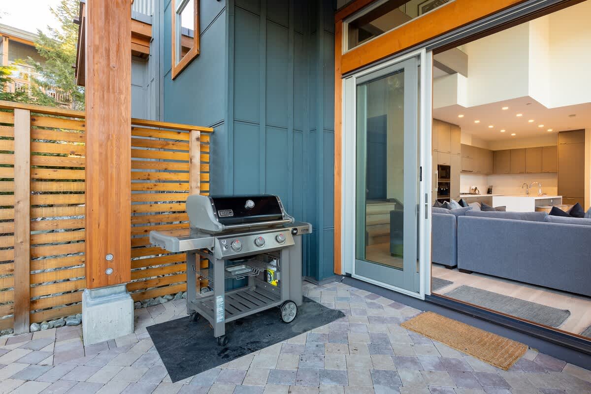 Set within the Residences at Lakecrest, this corner-unit townhouse blends lake and mountain views with an inviting, retreat-like atmosphere. An airy lounge opens toward expansive windows and vaulted ceilings, while retractable glass doors lead to a sheltered patio furnished with outdoor seating, a BBQ grill, and a gas fireplace for calm, bundled-up moments outdoors. Indoors, a den with a large TV provides a cozy setting for movie nights or quiet downtime. A double car garage with ski and bike racks and a boot dryer keeps gear organized throughout your stay. The townhouse includes heating, an indoor fireplace, portable fans, wifi, room-darkening shades, a safe, and a dedicated workspace on each level.