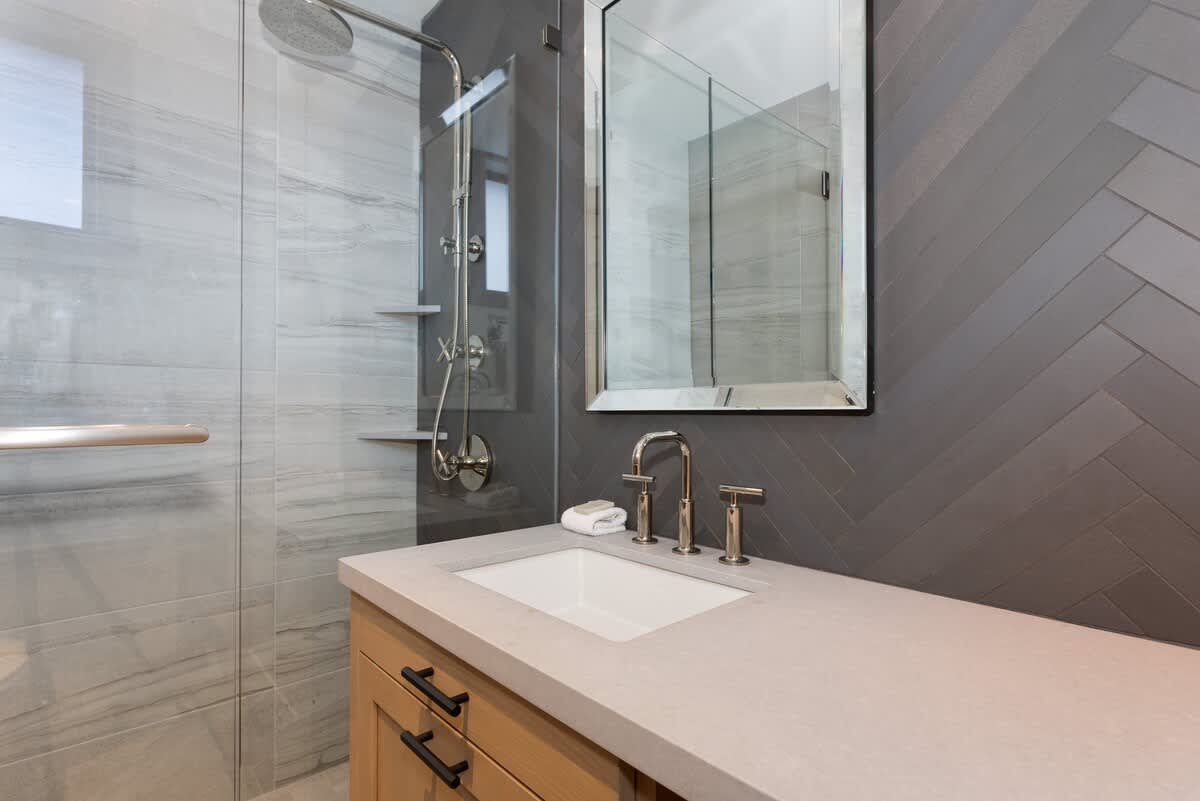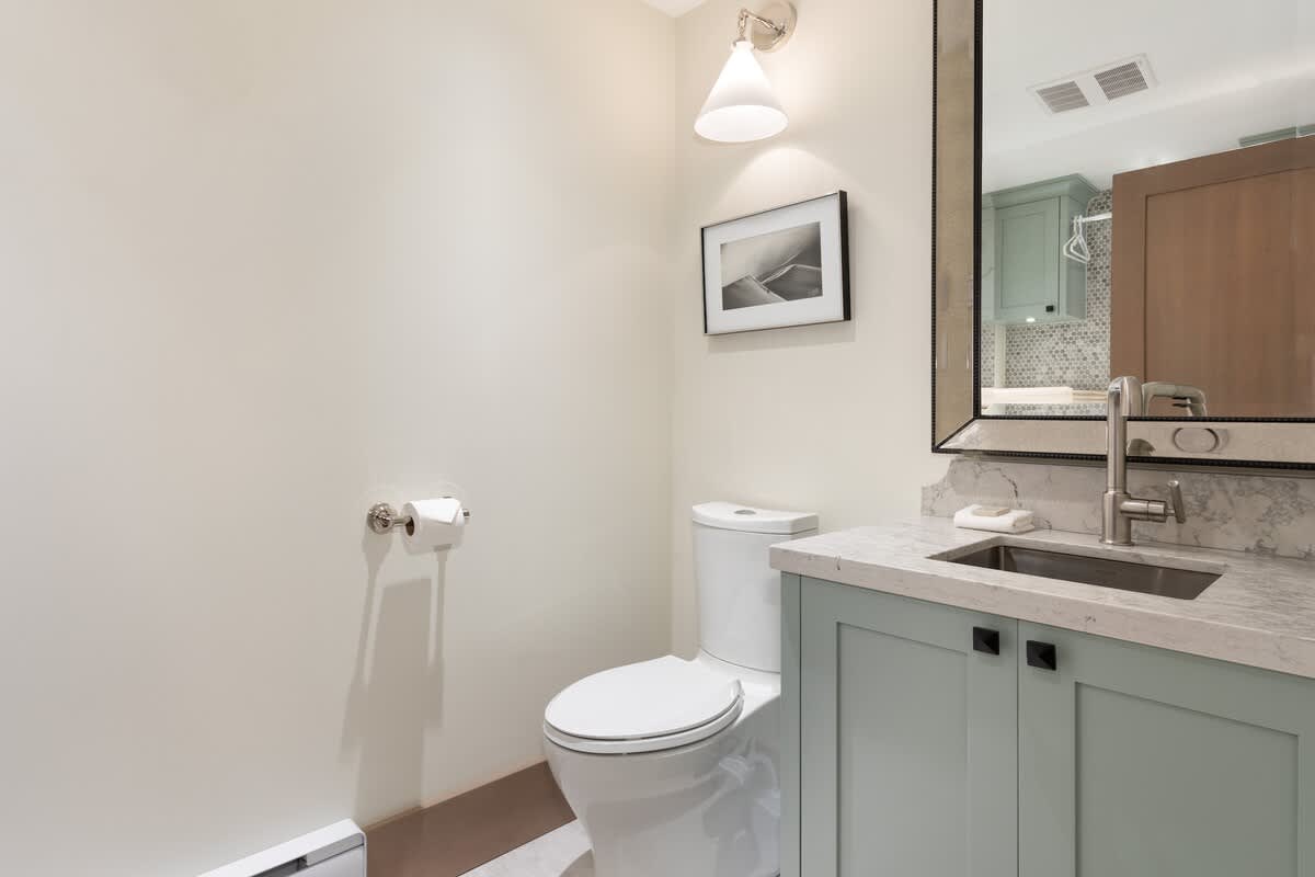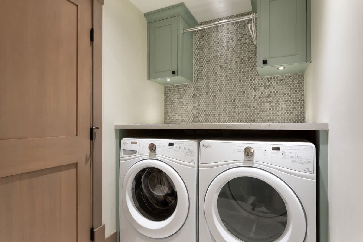 In addition to the two ensuite bathrooms, a third full bathroom with a shower is located on the main level, with a powder room downstairs. Bathroom essentials are provided for your stay. You’ll also have in-unit washer and dryer access, along with extra pillows and blankets for added comfort.