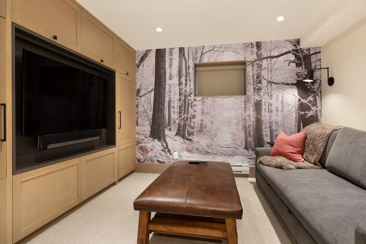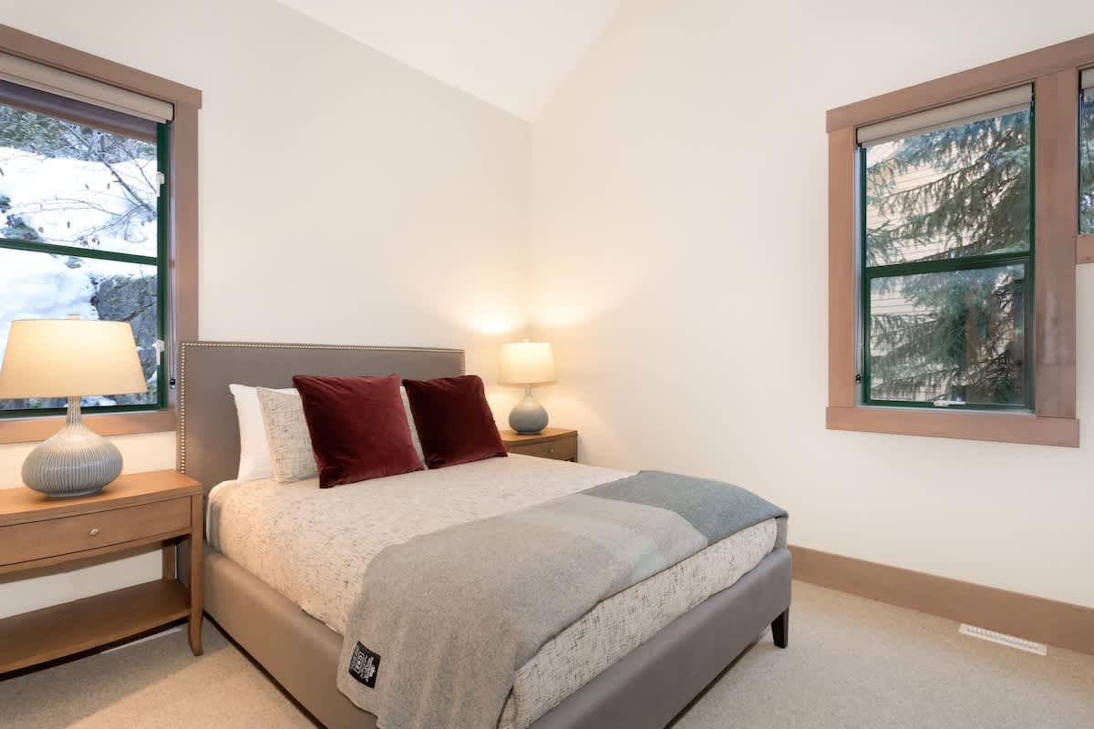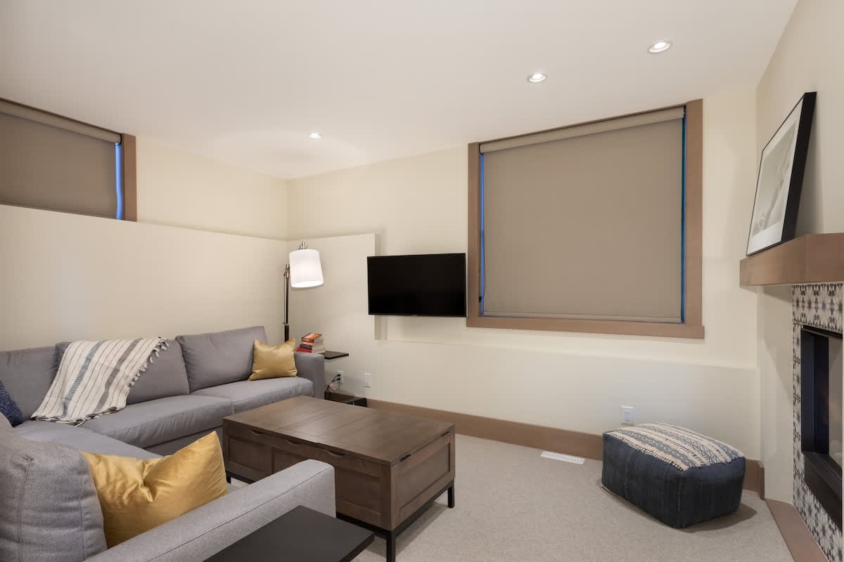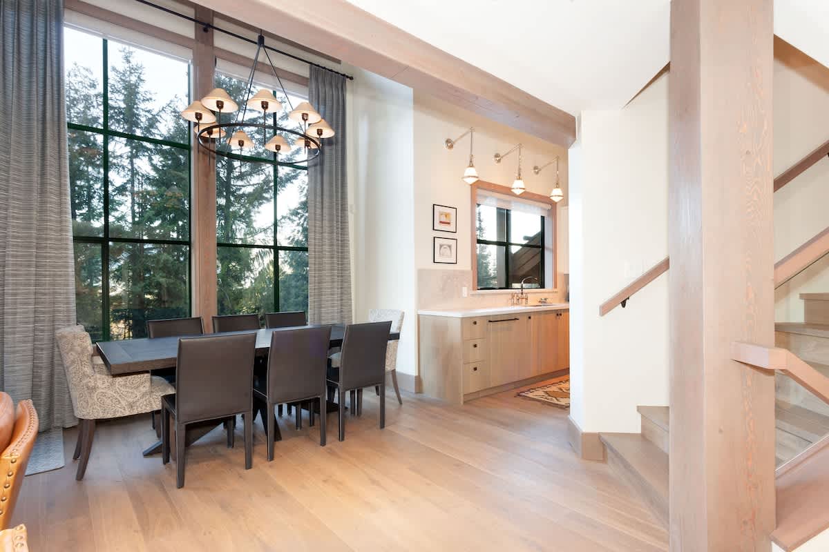 Perched in the Northern Lights neighborhood, this spacious townhouse blends a tranquil mountainside setting with easy access to Whistler’s restaurants, shops, and the Valley Trail. Inside, vaulted ceilings and expansive windows fill the main living area with natural light, while a two-way gas fireplace brings a cozy focal point on crisp nights. A large sectional sofa, wet bar with wine fridge, and dining area with seating for eight make it easy to gather together after a full day outdoors. For quieter downtime, both a media room and TV room with soundbars offer comfortable spaces to relax.