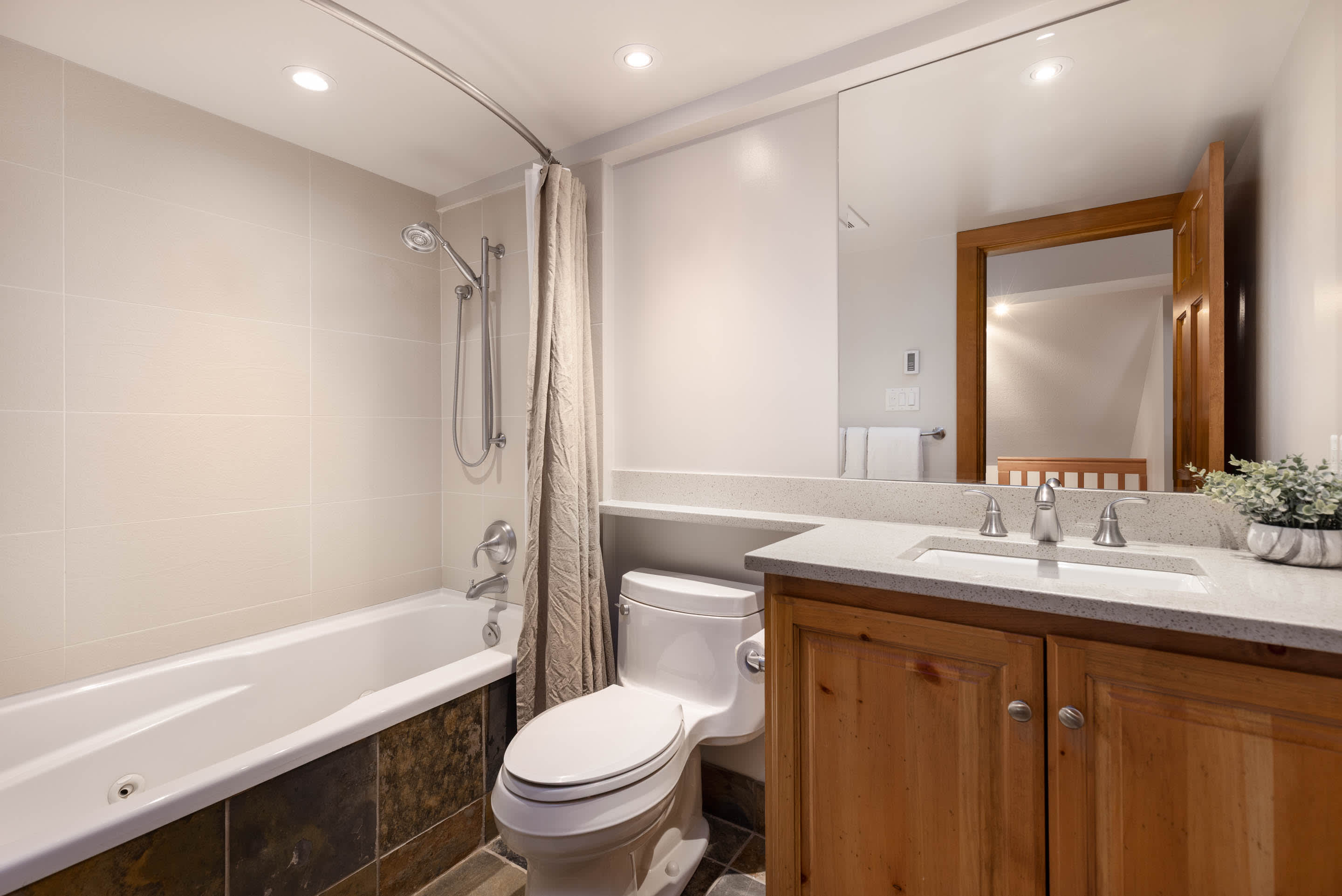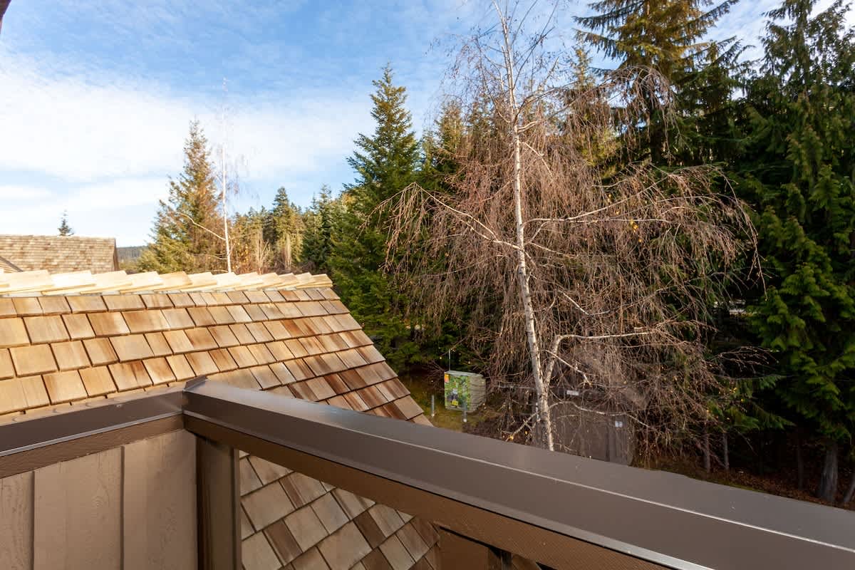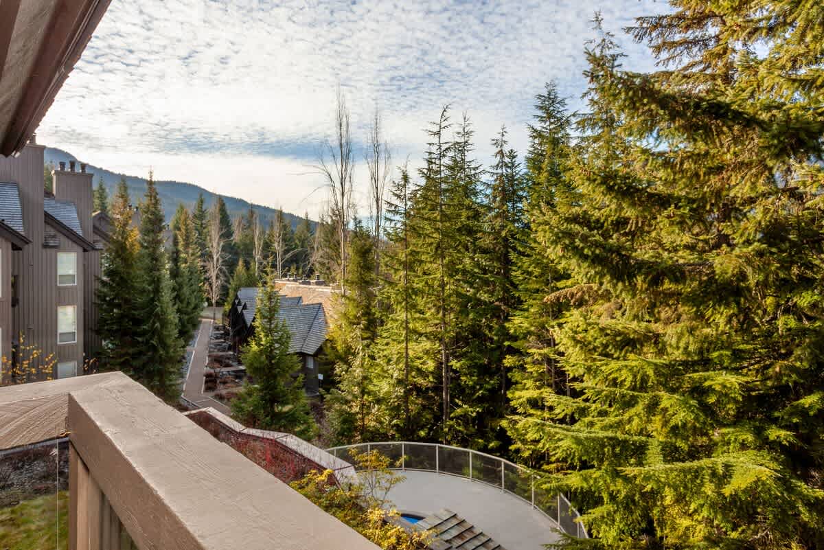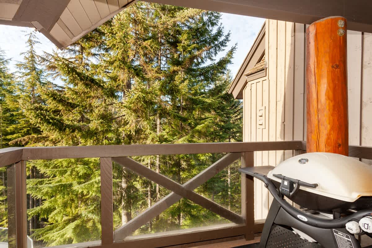 The private deck serves as a serene spot for winter air and quiet forest views. Guests also have access to the shared hot tub within the complex, a welcome way to warm up after skiing. Outdoor furniture and a BBQ grill allow you to make use of the space when weather allows.