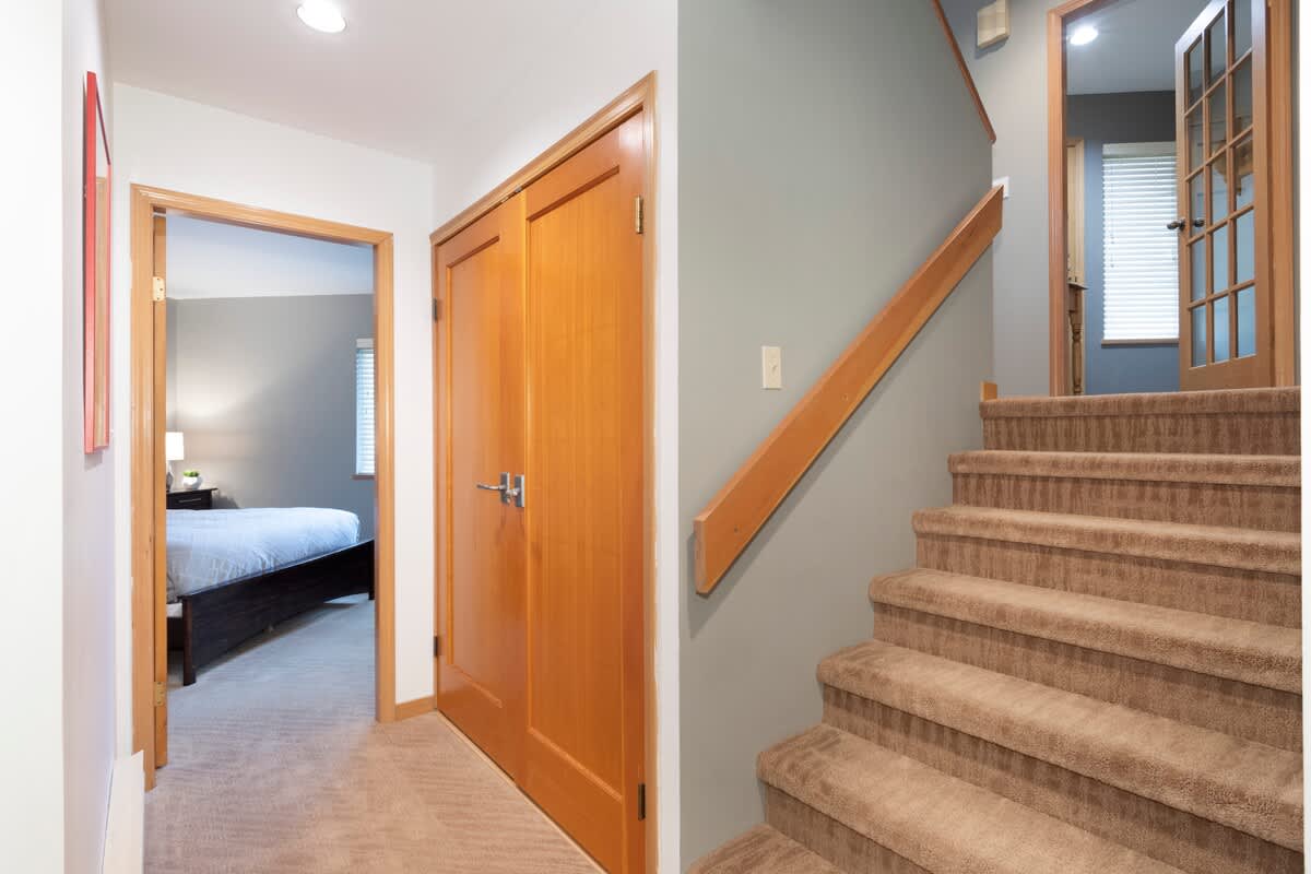 The home includes a private entrance, free parking garage on premises, free street parking, and an EV charger (EV charger fee applies). You’ll also have a washer and dryer, WiFi, and self check-in with a smart lock. Long term stays are allowed for 28 days or more.