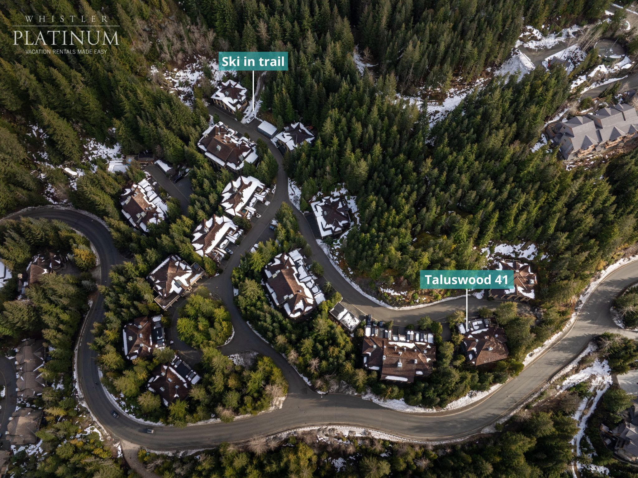 Located in the quiet Taluswood neighborhood high on Whistler Mountain, the townhouse offers direct connection to nature. Intermediate ski trails leading to Lower Dave Murray and the 2010 Olympic downhill course are accessible on foot for experienced skiers, while Creekside’s shops, restaurants, and gondola are a short drive away.