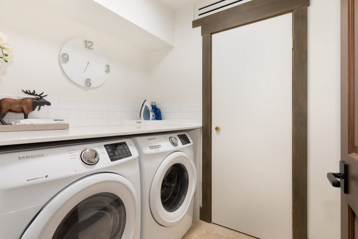 The townhouse includes WiFi, in-unit washer and dryer, an indoor fireplace, a dedicated workspace, and self check-in via smart lock. A private entrance, luggage dropoff option, and long-term stays allowed add ease for both short winter getaways and extended stays.