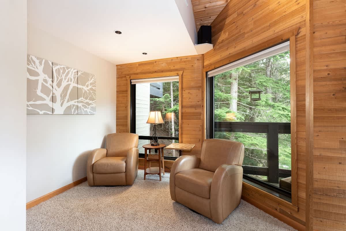 Set within peaceful woodlands yet close to Whistler Village, this four-bedroom, three-bath townhouse offers a warm, practical base for winter days spent skiing, exploring, and settling in by the fire as evening falls.