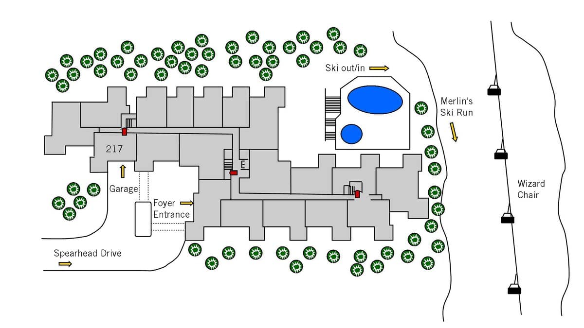 • Direct access to Merlin’s ski run from the rear of the property