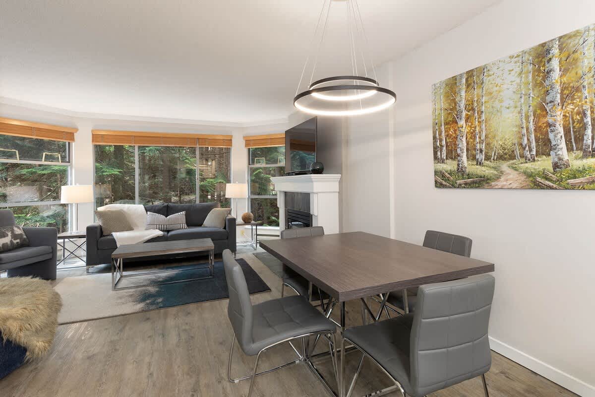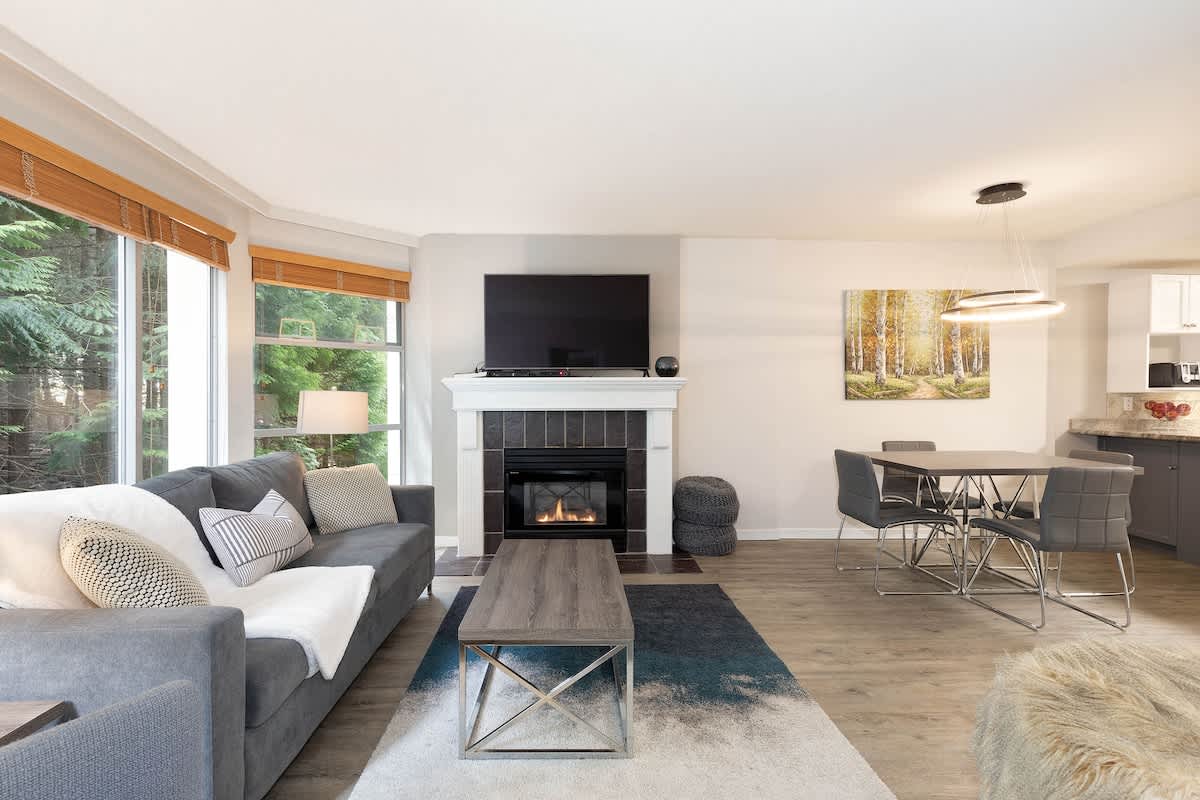 Set within Woodrun Lodge on Blackcomb Mountain, this ski-in/ski-out condo offers a comfortable home base for a winter stay in Whistler. From the building’s ski locker room, you have direct access to Merlin’s ski run and the Blackcomb Gondola, making it easy to come and go throughout the day without driving or shuttles. Large windows bring the surrounding forest into the living space, creating a peaceful backdrop for time spent indoors.