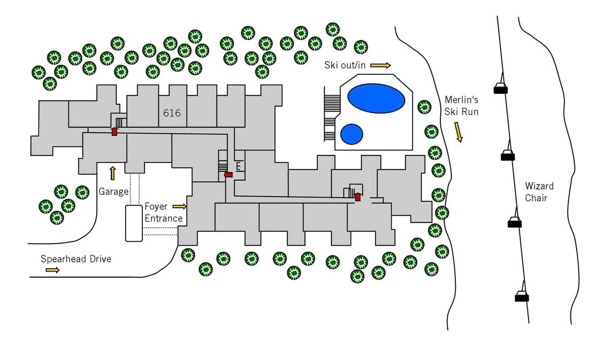 • Direct access to Merlin’s ski run from the rear of the property